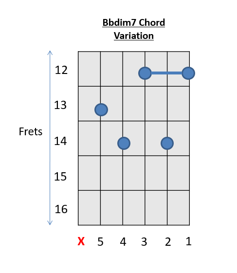 Diminished 7th Guitar Chord Shapes Example Progression